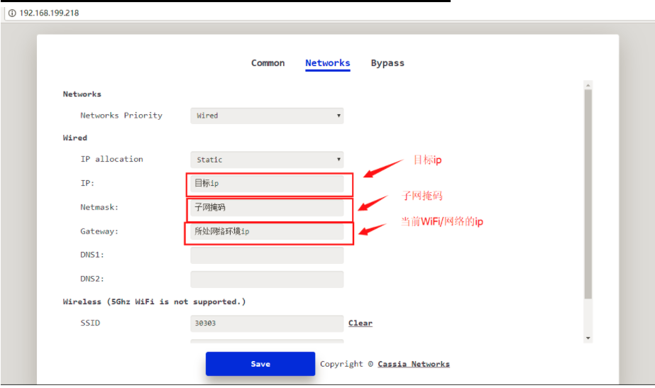 2.设置静态ip,进入到配置页面后在上方networks选项中的wired,选择static